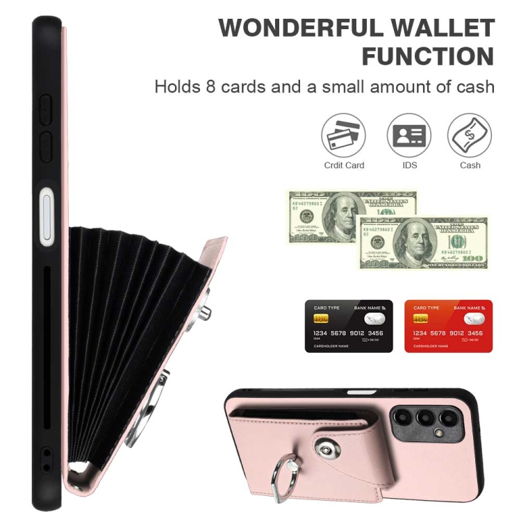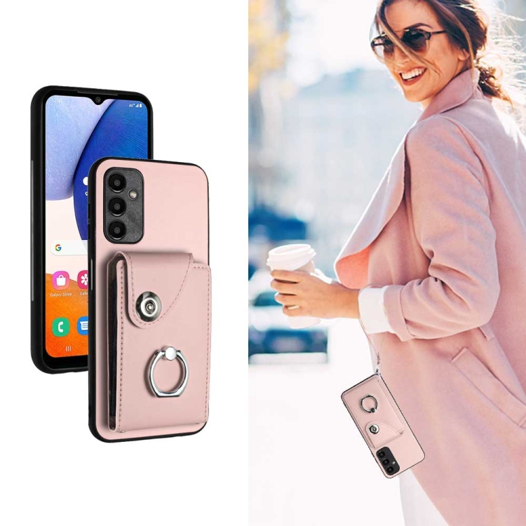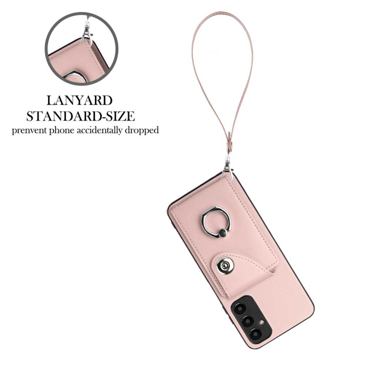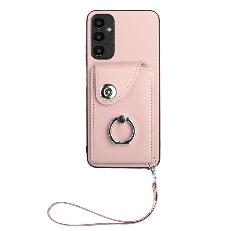 Funda para Teléfono Samsung Galaxy A24 4G de Pu con Soporte para Anillo y Bolsa para Tarjeta con Cordón (Rosa)
