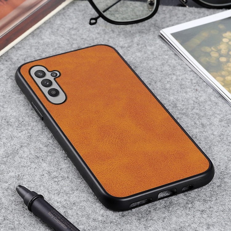 Funda de Teléfono Samsung Galaxy A24 Pu Textura Becerro Dos Colores Orificio Preciso (Marrón)