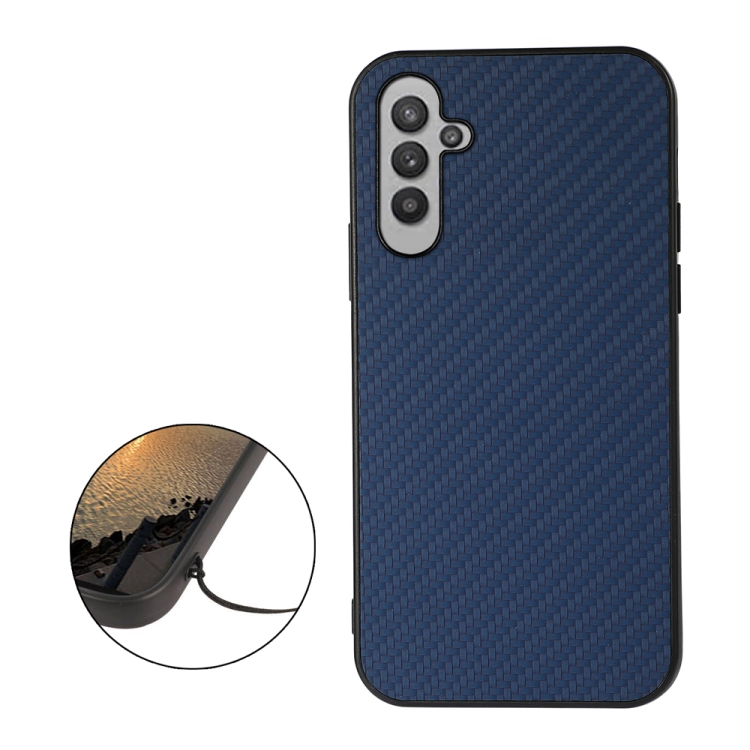 Funda de teléfono Samsung Galaxy A24 PU Textura fibra de carbono Orificio preciso (Azul)