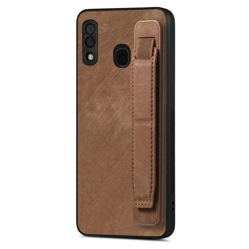 Funda Trasera Samsung Galaxy A30 Cuero con Soporte para Pulsera (Marrón)