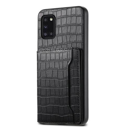 Estuche para Teléfono Samsung Galaxy A31 4G Diseño Bolsa para Tarjetas Textura de Cocodrilo (Negro)