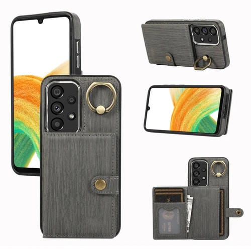 Funda para Teléfono Samsung Galaxy A33 5G con Soporte para Anillo y Billetera con Textura Cepillada (Gris)