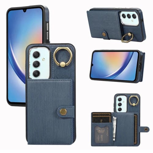 Funda para Teléfono Samsung Galaxy A34 5G con Soporte para Anillo y Billetera con Textura Cepillada (Azul)