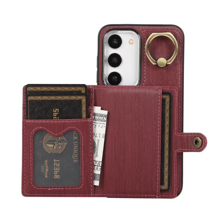 Funda para Teléfono Samsung Galaxy A34 5G con Soporte para Anillo y Billetera con Textura Cepillada (Rojo Oscuro)