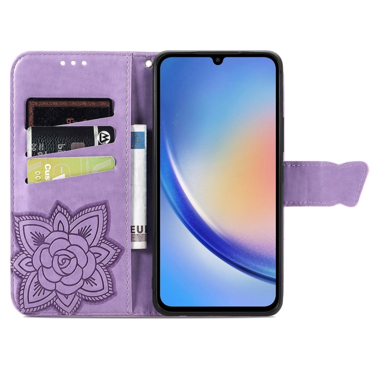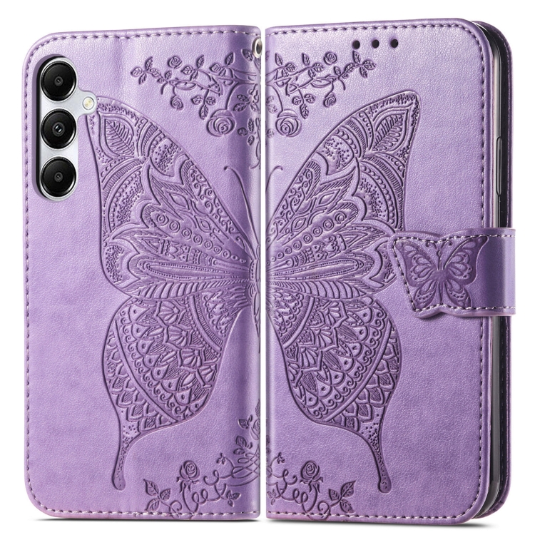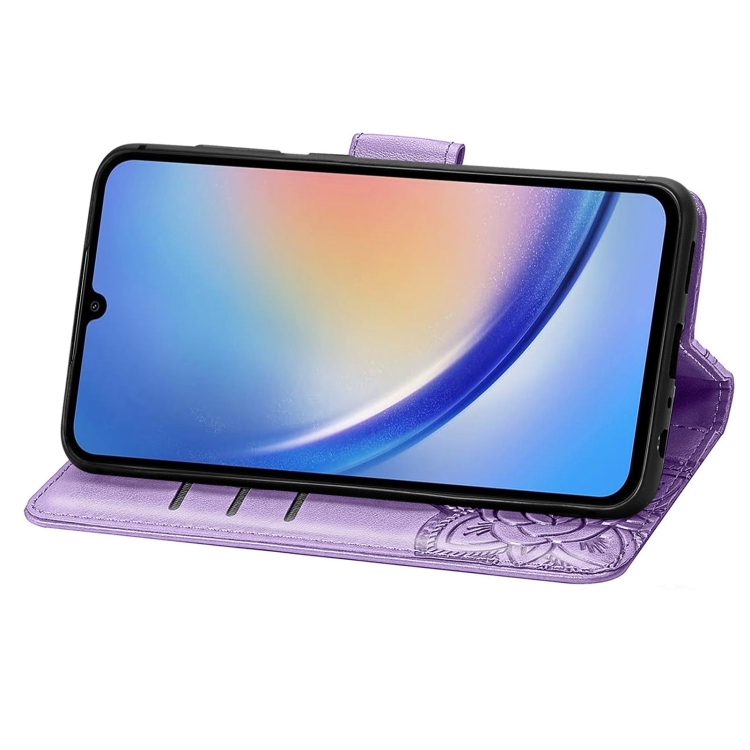Funda para Teléfono Samsung Galaxy A35 5G Cuero Relieve Flor Amor y Mariposa (Púrpura Claro)