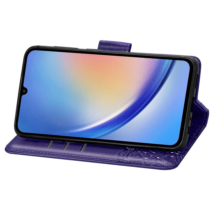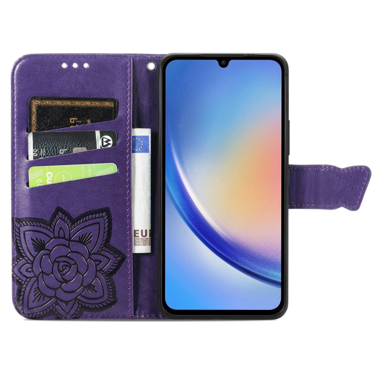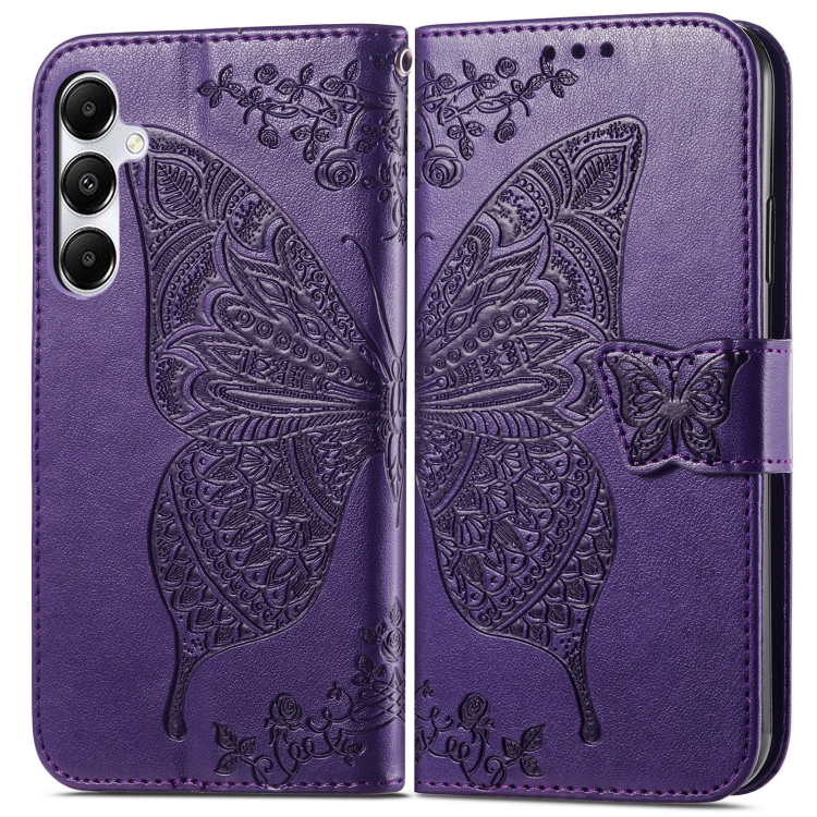 Funda para Teléfono Samsung Galaxy A35 5G Cuero Relieve Flor de Amor y Mariposa (Púrpura Oscuro)