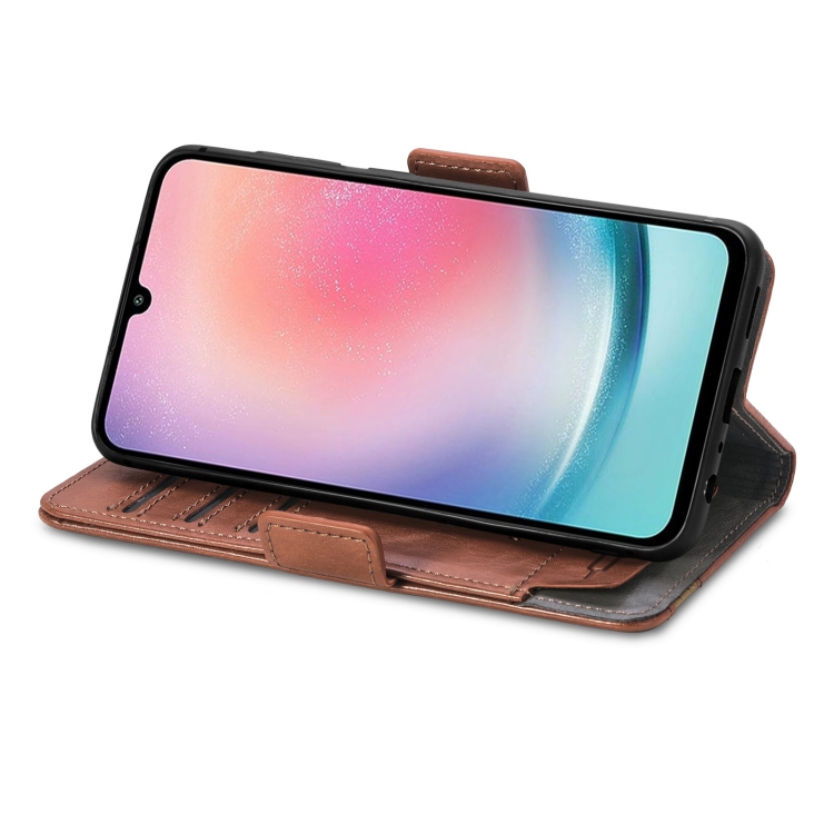 Funda de Cuero Caseneo para Samsung Galaxy A35 con Hebilla Magnética Dual (Marrón)