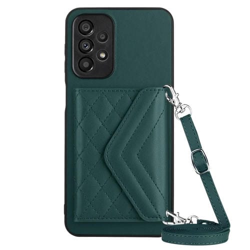 Estuche para Teléfono Samsung Galaxy A52 con Bolsa para Tarjetas Rfid Textura Rómbica Cordón Largo (Verde)