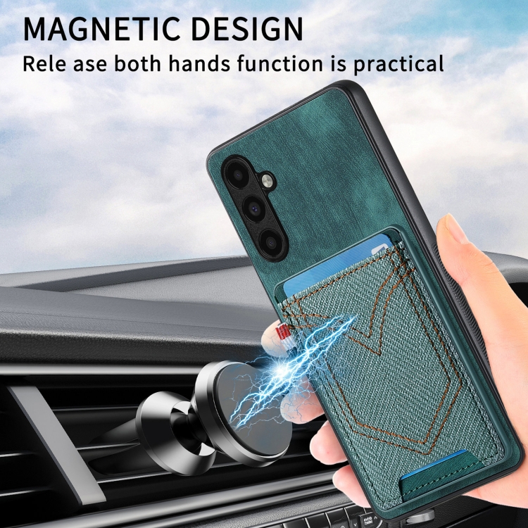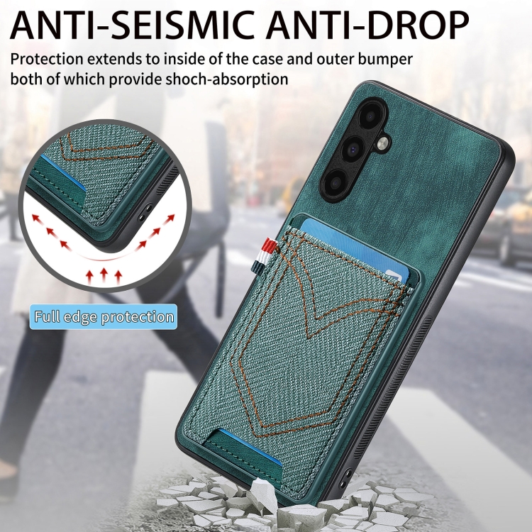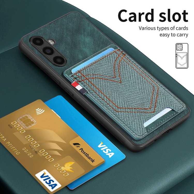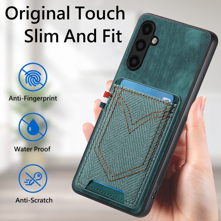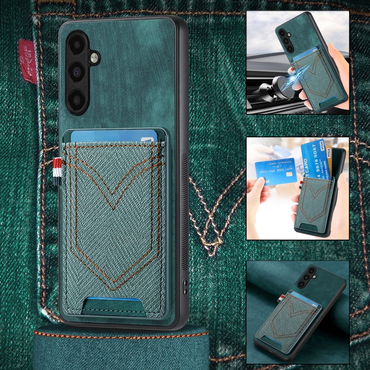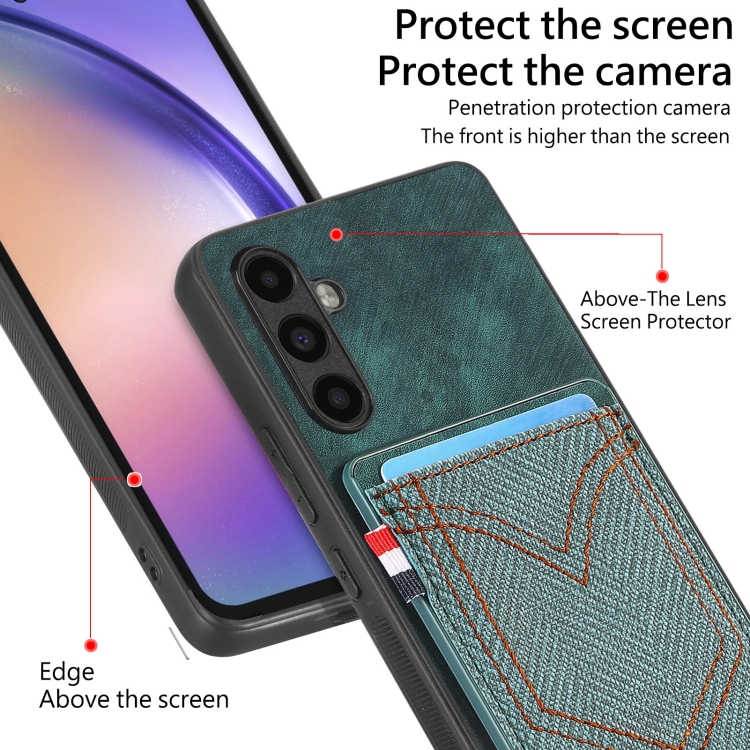 Funda para Teléfono Samsung Galaxy A54 5G Piel de Cuero Textura Vaquera Ranura para Tarjeta (Verde)