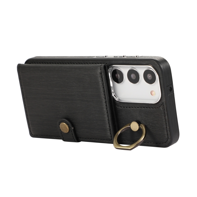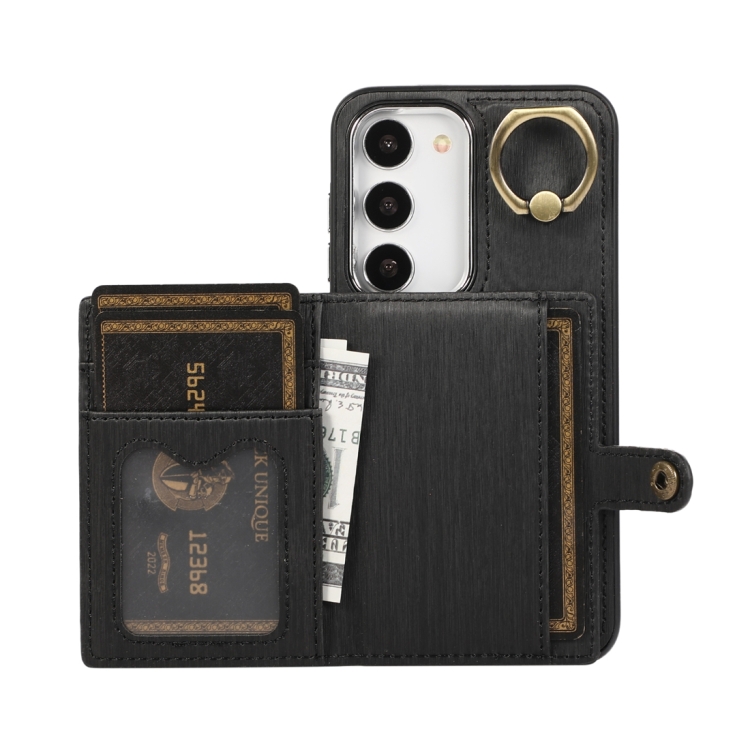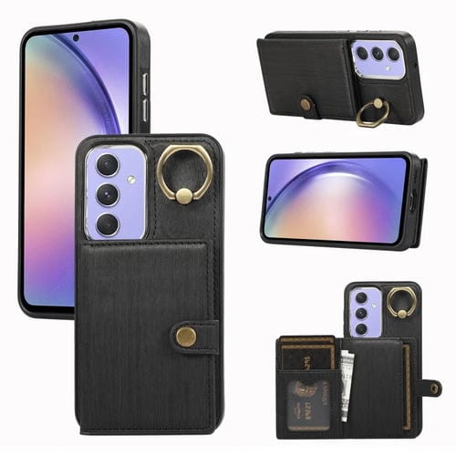 Funda para Teléfono Samsung Galaxy A54 5G con Soporte para Anillo y Billetera con Textura Cepillada (Negro)