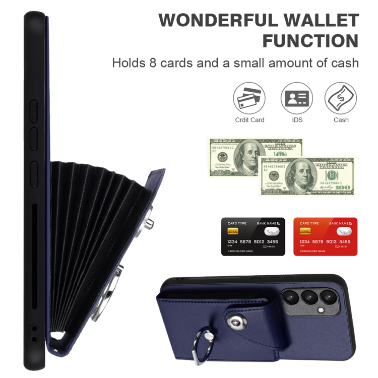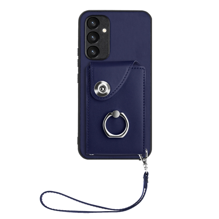 Funda para Teléfono Samsung Galaxy A54 5G Pu con Soporte para Anillo y Bolsa para Tarjeta con Cordón (Azul)