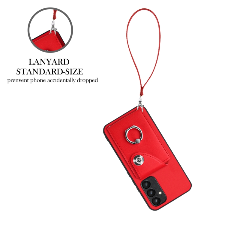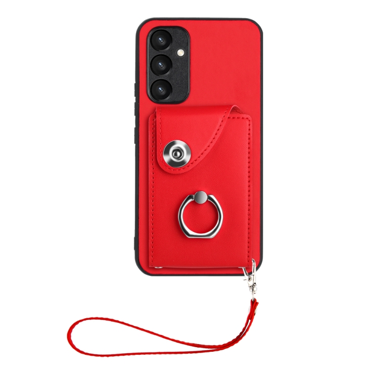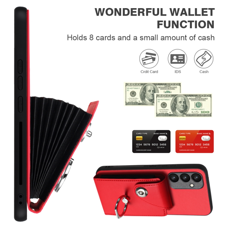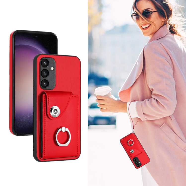 Funda para Teléfono Samsung Galaxy A54 5G de PU con Soporte para Anillo y Bolsa para Tarjeta con Cordón (Rojo)