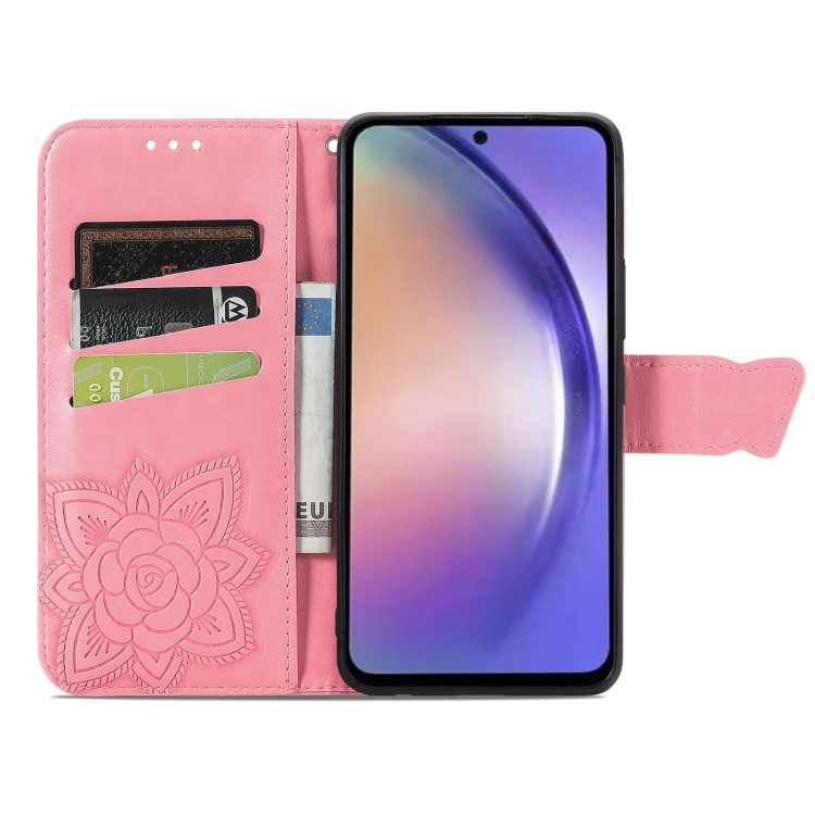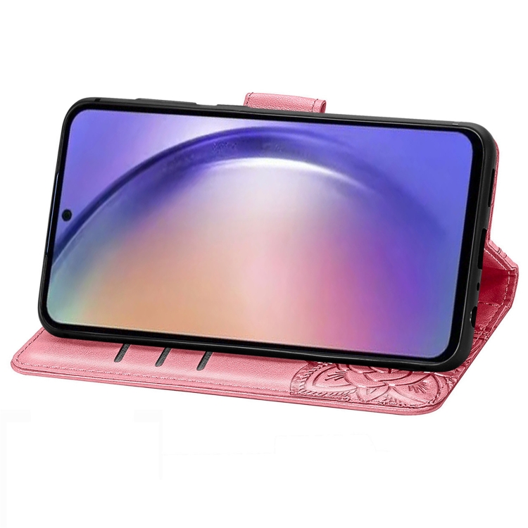 Funda para Teléfono Samsung Galaxy A55 5G Cuero Relieve Flor de Amor y Mariposa (Rosa)