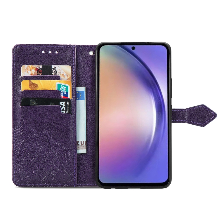 Funda para Teléfono Samsung Galaxy A55 5G Cuero Relieve Flor de Mandala (Púrpura)