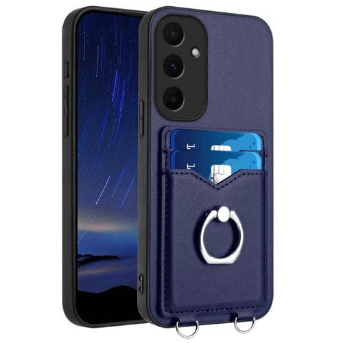 Estuche para Teléfono Samsung Galaxy A55 5G R20 con Soporte para Tarjeta y Anillo (Azul)