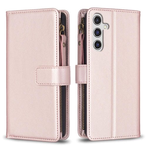 Funda Cartera Samsung Galaxy A55 9 Ranuras para Tarjetas con Cremallera y Tapa (Oro Rosa)