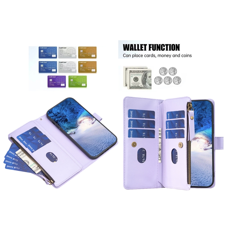 Funda para Teléfono Samsung Galaxy A55 Cartera con 9 Ranuras y Cremallera (Púrpura Claro)