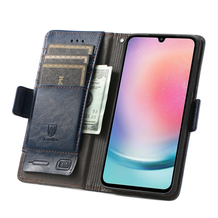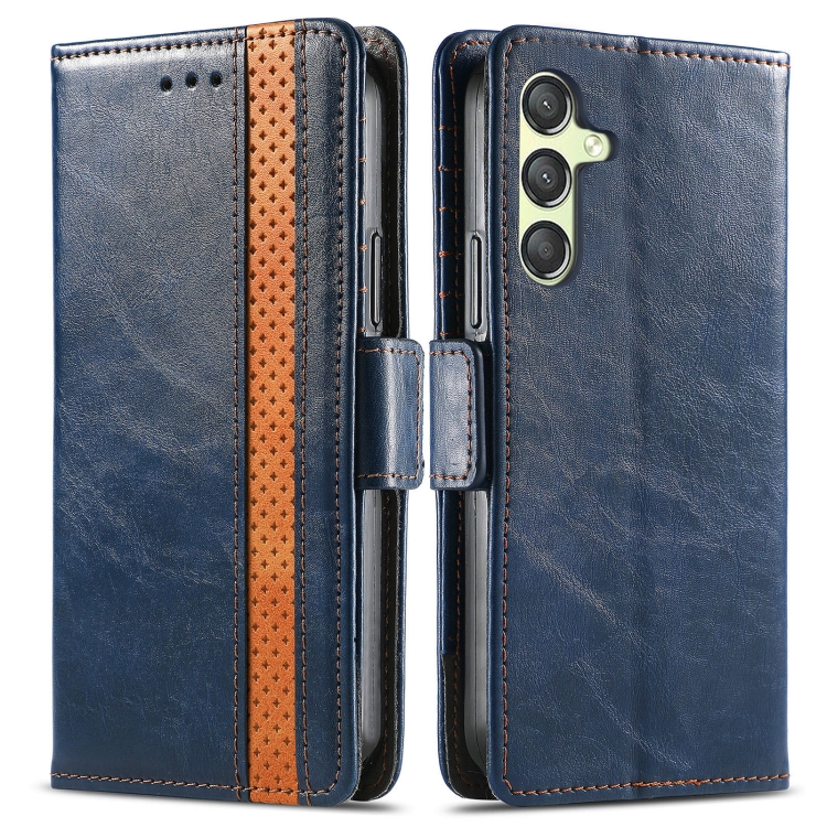 Funda de Cuero Caseneo para Samsung Galaxy A55 con Hebilla Magnética Dual (Azul)
