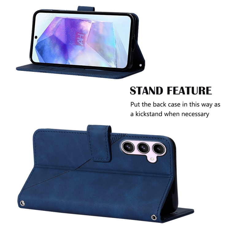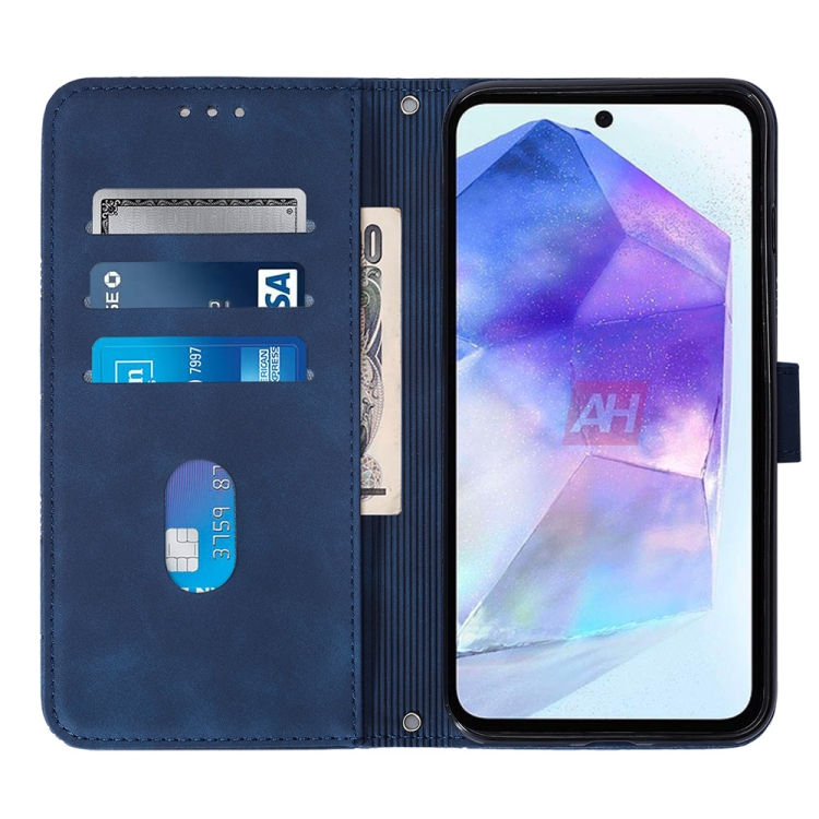 Funda de Cuero Crossbody para Samsung Galaxy A55 con Tapa en Relieve 3D (Azul)