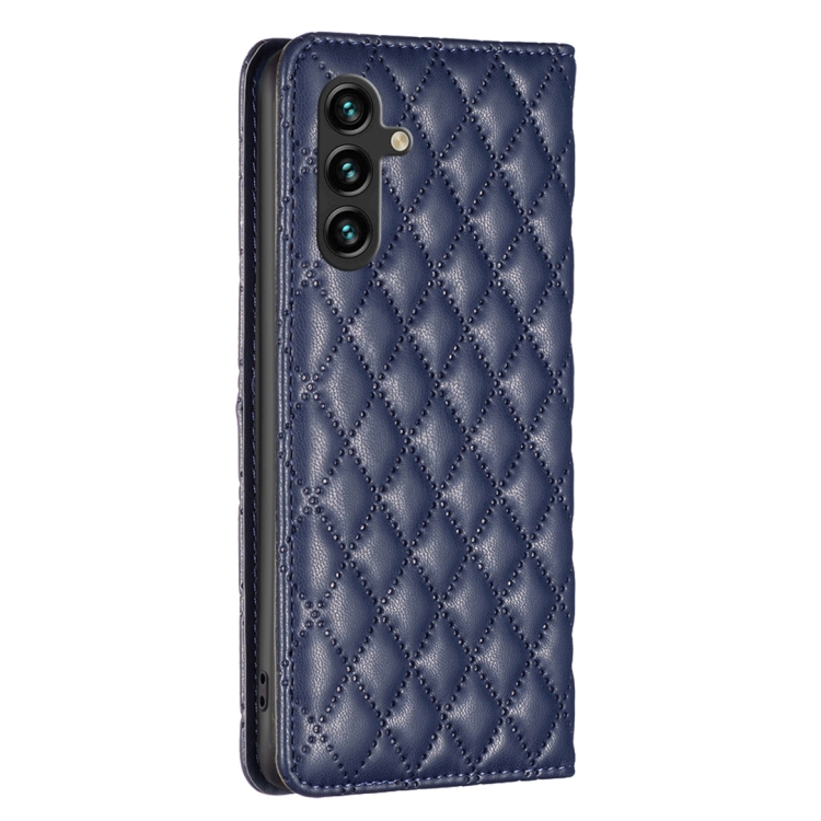 Funda para Teléfono Samsung Galaxy A55 Diamond Lattice con Tapa de Cuero Magnético (Azul)