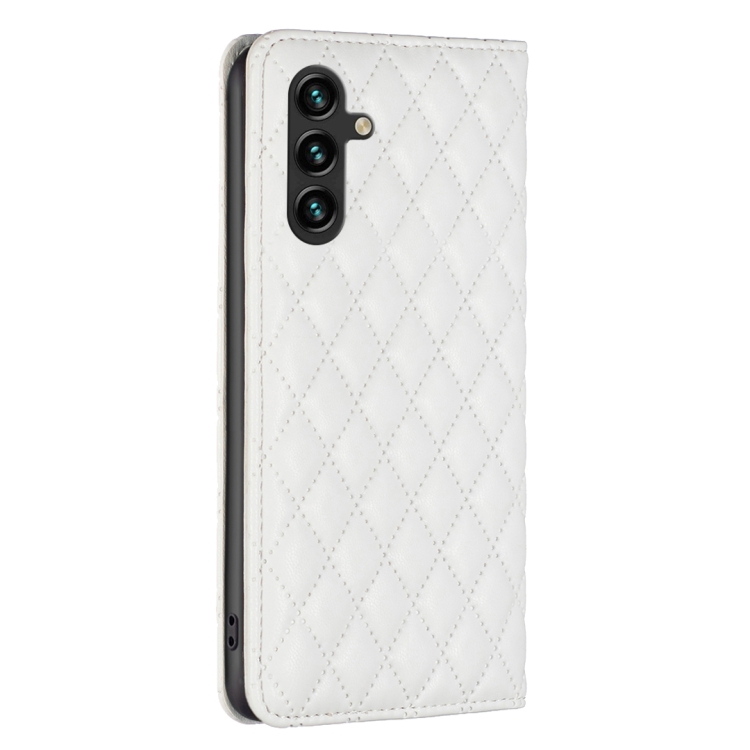 Funda para Teléfono Samsung Galaxy A55 con Tapa de Cuero Magnético Diamond Lattice (Blanco)