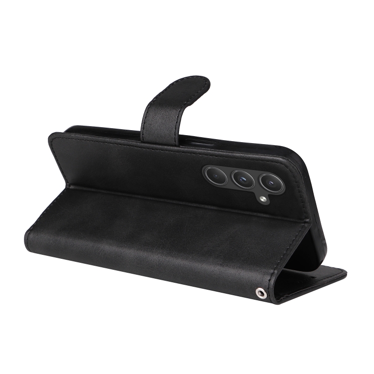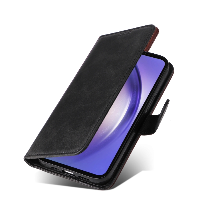 Funda para Teléfono Samsung Galaxy A55 Cuero con Tapa Textura de Becerro (Negro)