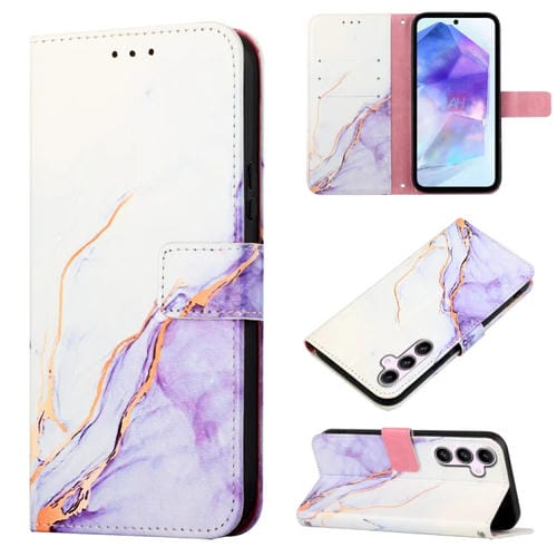 Funda para Teléfono Samsung Galaxy A55 Pt003 Cuero con Tapa Patrón Mármol (Blanco y Morado)