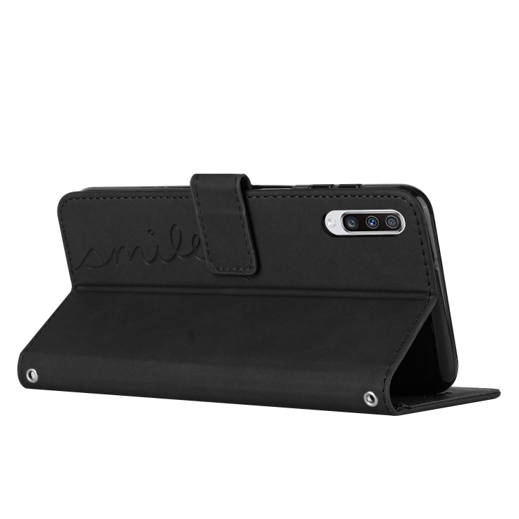 Funda de Cuero Samsung Galaxy A70 Skin Feel Heart Pattern con Cordón (Negro)