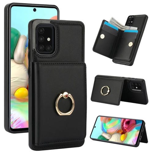 Estuche para Teléfono Samsung Galaxy A71 4G Rfid Tarjeta Antirrobo con Soporte para Anillo (Negro)