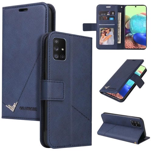 Estuche para Teléfono Samsung Galaxy A71 Gq Utrobe Cuero En Ángulo Recto (Azul)
