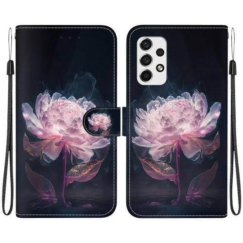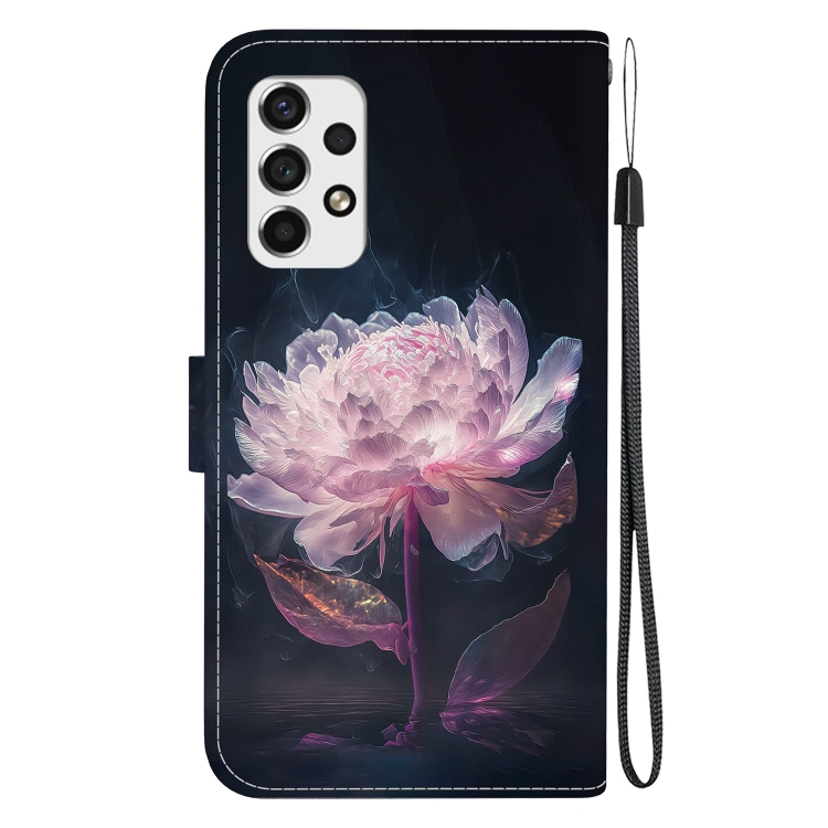 Funda para Teléfono Samsung Galaxy A73 5G Cuero Dibujo Coloreado Textura de Cristal (Peonía Púrpura)