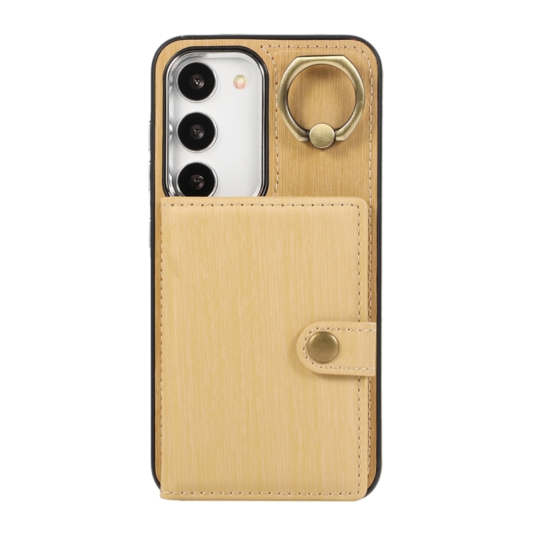 Funda para Teléfono Samsung Galaxy S22+ 5G con Soporte para Anillo y Billetera con Textura Cepillada (Amarillo)