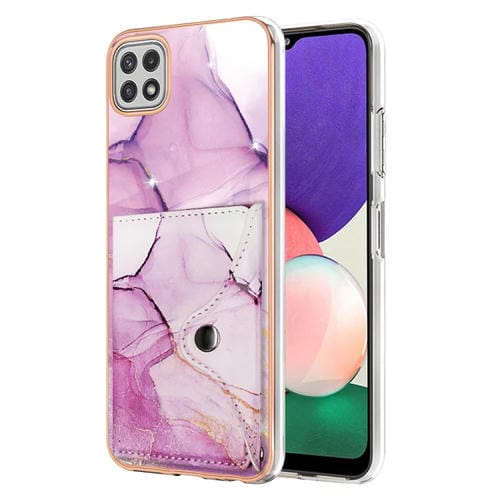 Estuche para Teléfono Samsung Galaxy M32 con Ranura para Tarjeta Imd Patrón Mármol (Oro Rosa, Morado)
