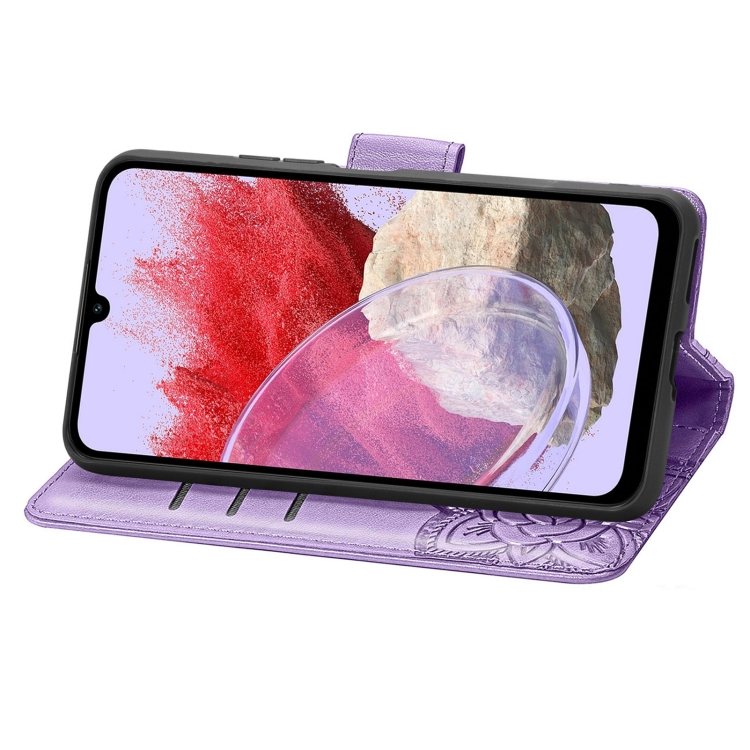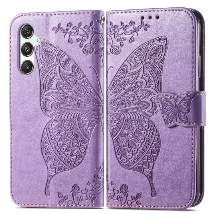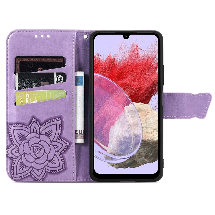 Funda para Teléfono Samsung Galaxy M34 5G Cuero Relieve Flor Amor y Mariposa (Púrpura Claro)
