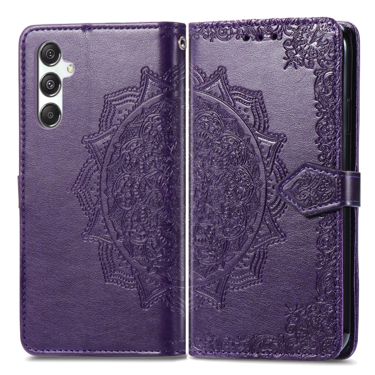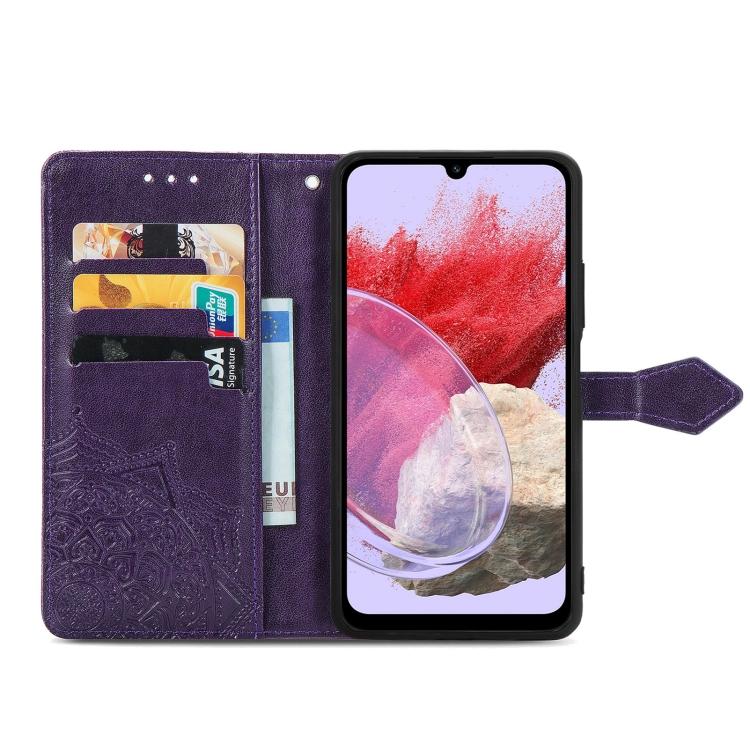 Funda para Teléfono Samsung Galaxy M34 5G Cuero con Relieve Flor de Mandala (Púrpura)