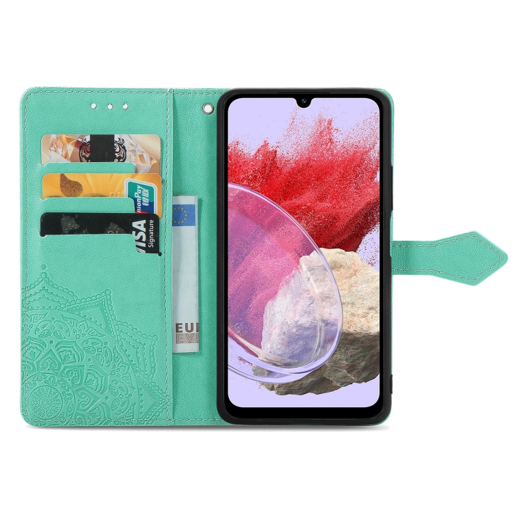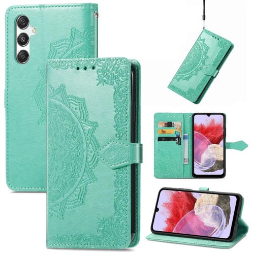 Funda para Teléfono Samsung Galaxy M34 5G Cuero con Relieve Flor de Mandala (Verde)