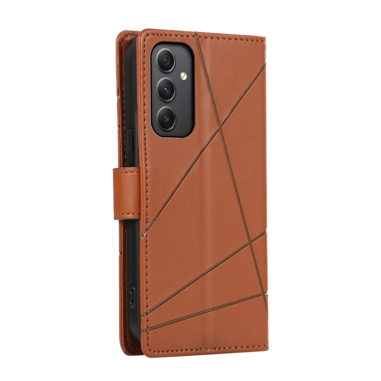 Funda para Teléfono Samsung Galaxy M34 5G con Línea en Relieve y Textura de Cuero Genuino (Marrón)