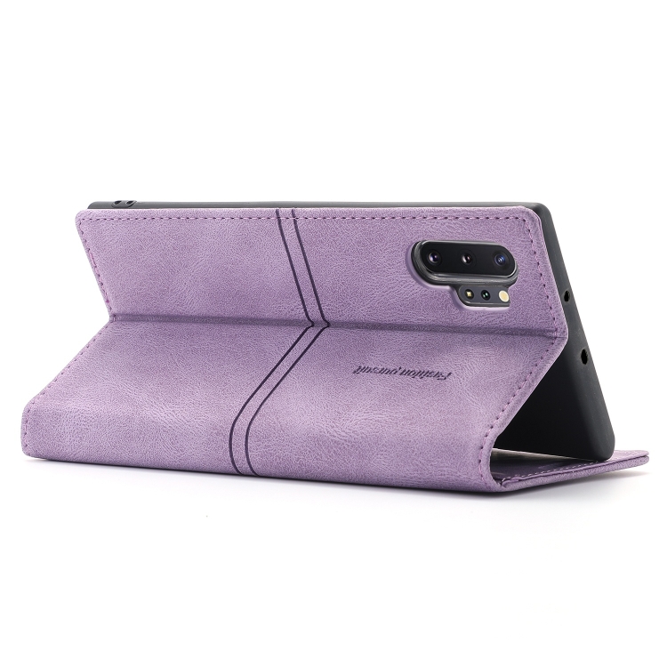 Funda flip para Samsung Galaxy Note10 Dream Magnetic Sucion Business con soporte y ranura para tarjeta y billetera (Púrpura)