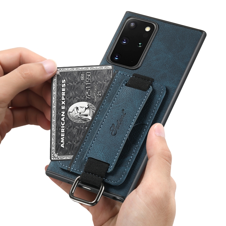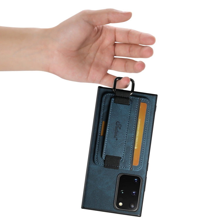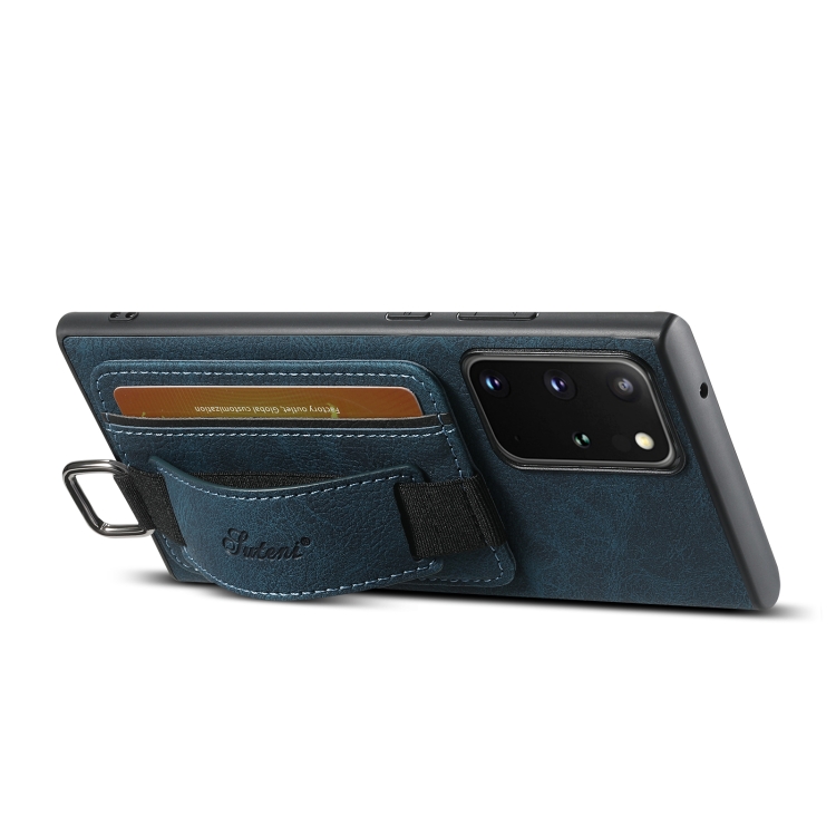 Funda para Samsung Galaxy Note20 5G Suteni H13 con Correa de Cuero Litchi y Billetera (Azul)