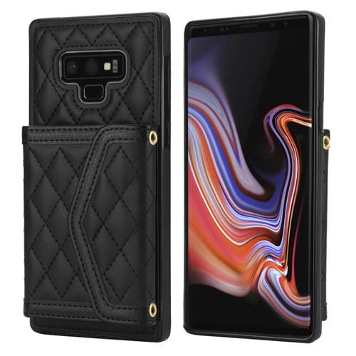 Estuche para teléfono Samsung Galaxy Note9 con bolsa para tarjetas textura rómbica y cordón largo (Negro)
