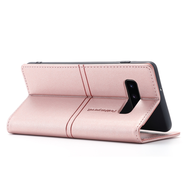 Funda para Samsung Galaxy S10+ Succión Magnética Flip PU Cuero con Soporte y Ranura para Tarjeta (Oro Rosa)