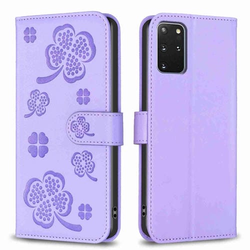 Funda de Cuero para Samsung Galaxy S20 con Relieve de Cuatro Hojas (Púrpura)