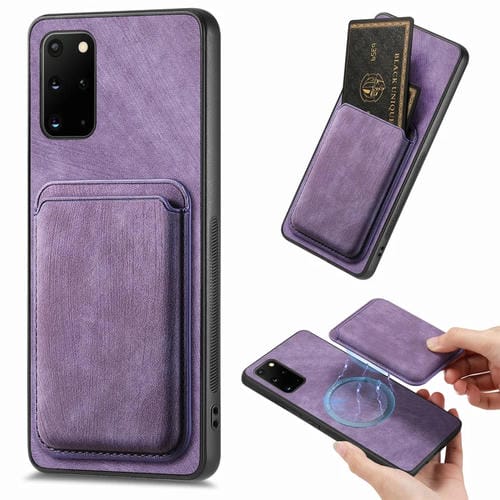 Funda de teléfono Samsung Galaxy S20 con bolsa de tarjeta magnética de cuero retro (Púrpura)