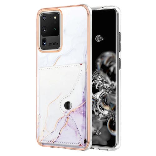 Estuche para Teléfono Samsung Galaxy S20 Ultra con Ranura para Tarjeta Imd Patrón Mármol (Blanco y Morado)