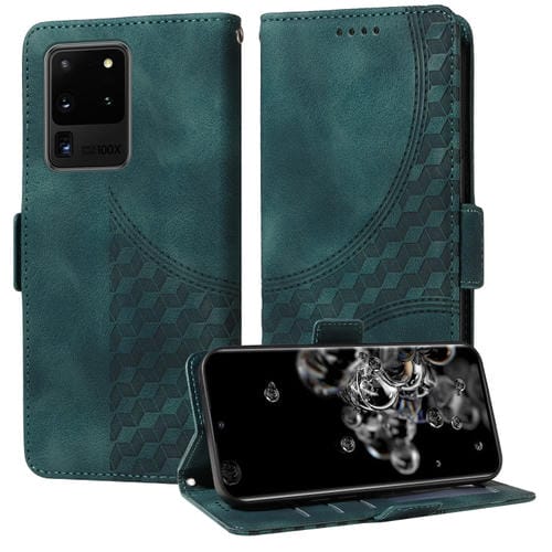Estuche para Teléfono Samsung Galaxy S20 Ultra Cuero Estrellado con Rombos en Relieve (Verde)