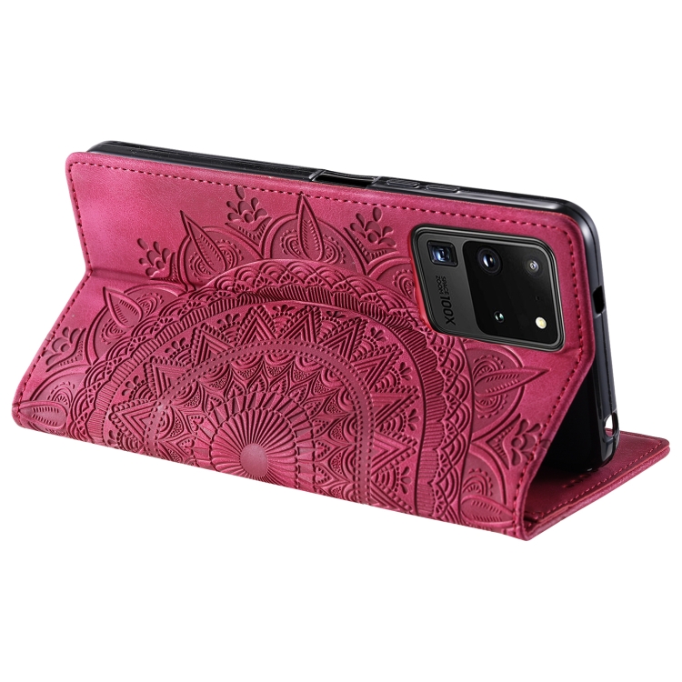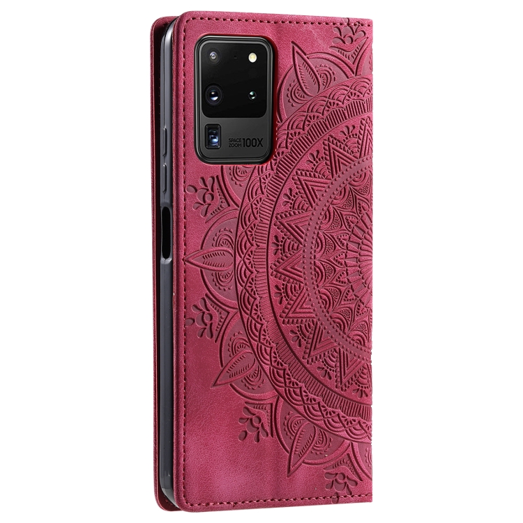 Funda de Cuero Magnética Totem para Samsung Galaxy S20 Ultra en Relieve (Rojo)
