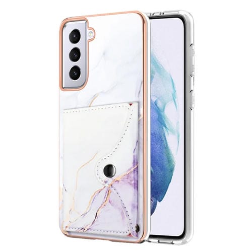 Estuche para Teléfono Samsung Galaxy S21 5G con Ranura para Tarjeta Imd Patrón Mármol (Blanco y Morado)