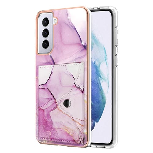 Estuche para Teléfono Samsung Galaxy S21 5G con Ranura para Tarjeta Imd y Patrón de Mármol (Oro Rosa Púrpura)