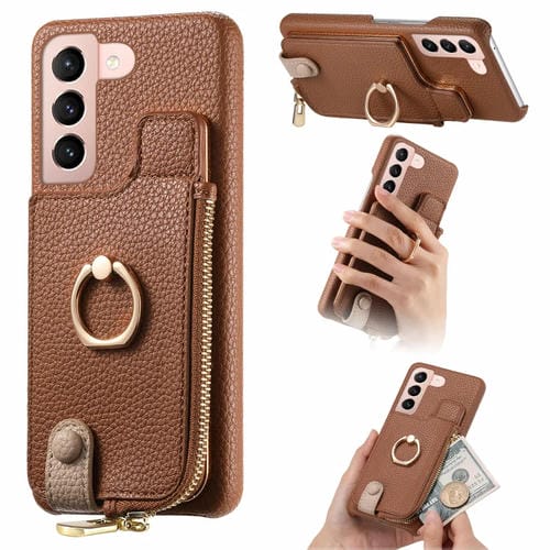 Funda para Samsung Galaxy S21 5G Litchi Leather Oil Edge Ring Zipper Wallet Back (Marrón)