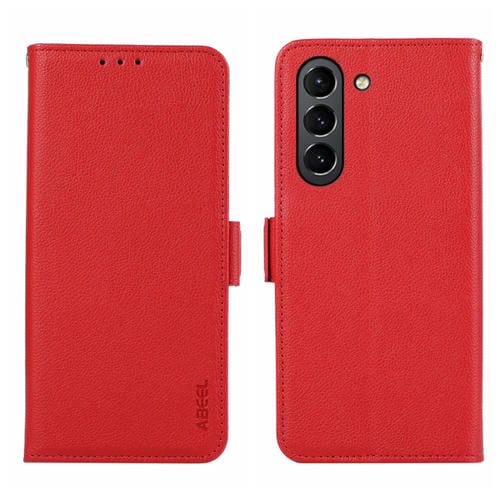Funda para Teléfono Samsung Galaxy S21 FE 5G Abeel Cuero Patrón Litchi Rfid Magnético (Rojo)